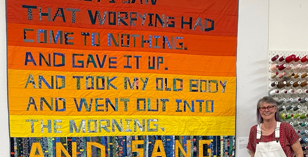 Liat's exhibit was amazing in so many ways. On a personal note, I was able to watch the majority of these quilts "in progress" through the Working in a Series course. So, needless to say, I walked in on Saturday and was literally brought to tears seeing them all hanging together. I love the work, but also love Liat’s write ups for each quilt, explaining her process and inspiration.